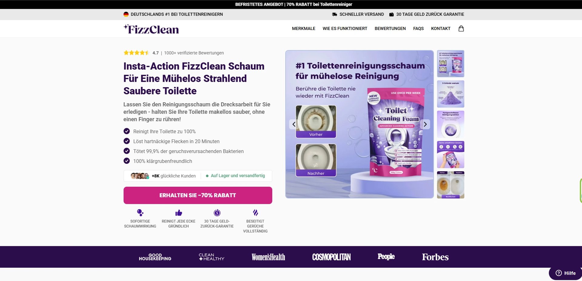 Suchen Sie nach einer effektiven Lösung, um hartnäckigen Urinstein zu entfernen und Kalkablagerungen ohne mühsames Schrubben loszuwerden? In unseren FizzClean FAQs beantworten wir die häufigsten Fragen zu unserem innovativen Nano-Schaumreiniger. Erfahren Sie alles über die sichere Anwendung in der Toilette, die Verträglichkeit für Abflussrohre und warum so viele Kunden positive FizzClean Erfahrungen teilen. Unser Ziel ist es, Ihnen eine hygienische Tiefenreinigung zu ermöglichen, die Zeit spart und Ihre Sanitäranlagen schont.